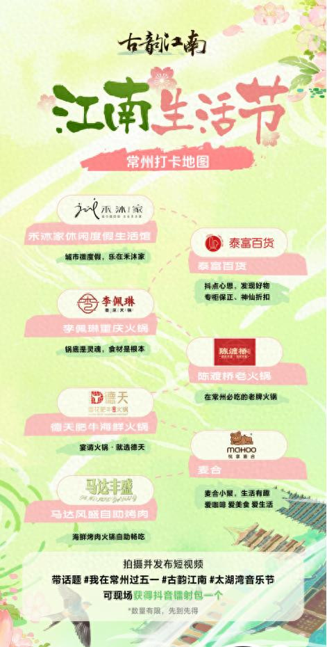 五一小长假临近,大众出游热情高涨。抖音生活服务数据显示,4月10日至4月23日,抖音音乐节相关团购订单量同比增长78%。借力假日营销,抖音生活服务联合第十届太湖湾音乐节落地“古韵江南之江南生活节”活动,联合常州本地商家推出“演出+美食”“演出+游玩”等新玩法。